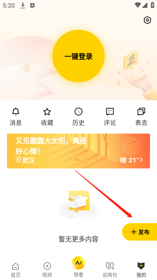 2、在“我的”页面点击“+”。,根据自身需要选择日记或者动态。