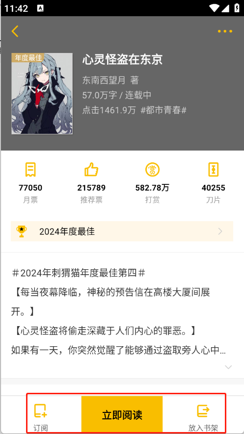 5、直接点开想看的小说或者漫画,可以加入书架、订阅以及阅读。