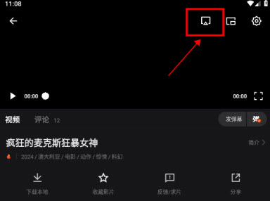 2接下来打开对应的应用程序播放视频,找到播放界面右上角的小电视图标并点击,同时要保证手机和电视连接着同一个无线网络。