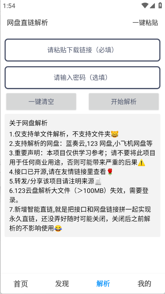 4、“解析”功能,输入解析链接就可以开始解析了。