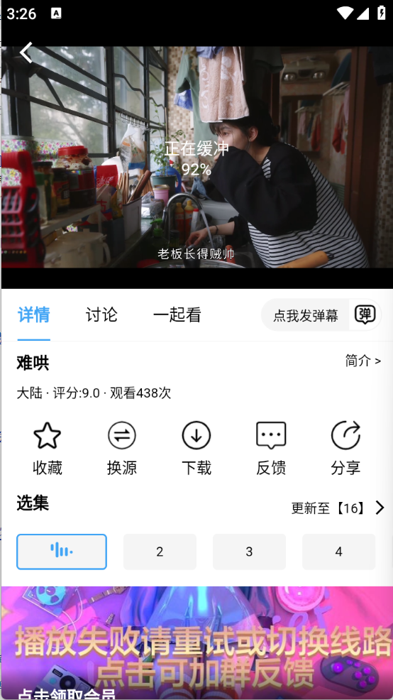 5当用户进入心仪的影视内容页面后,可根据需求自由选择具体剧集、将画面投射至大屏设备,或切换不同的播放资源渠道。