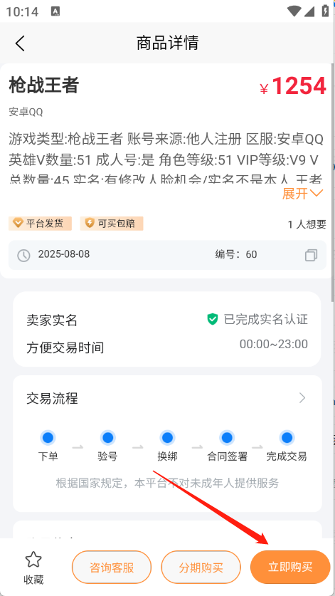 4、点开需要的游戏账号,点击“立即购买”即可。
