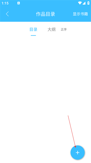 3、进入作品目录页面后,点击右下角的“+”号按钮,即可展开创建选项菜单。