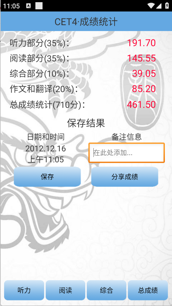 3、填写完成之后,点击“总成绩”就可以了。