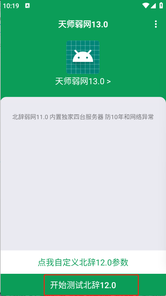 5返回首页后,点击页面上标注的“启动北辞12.0参数测试”选项就能完成这一步操作。