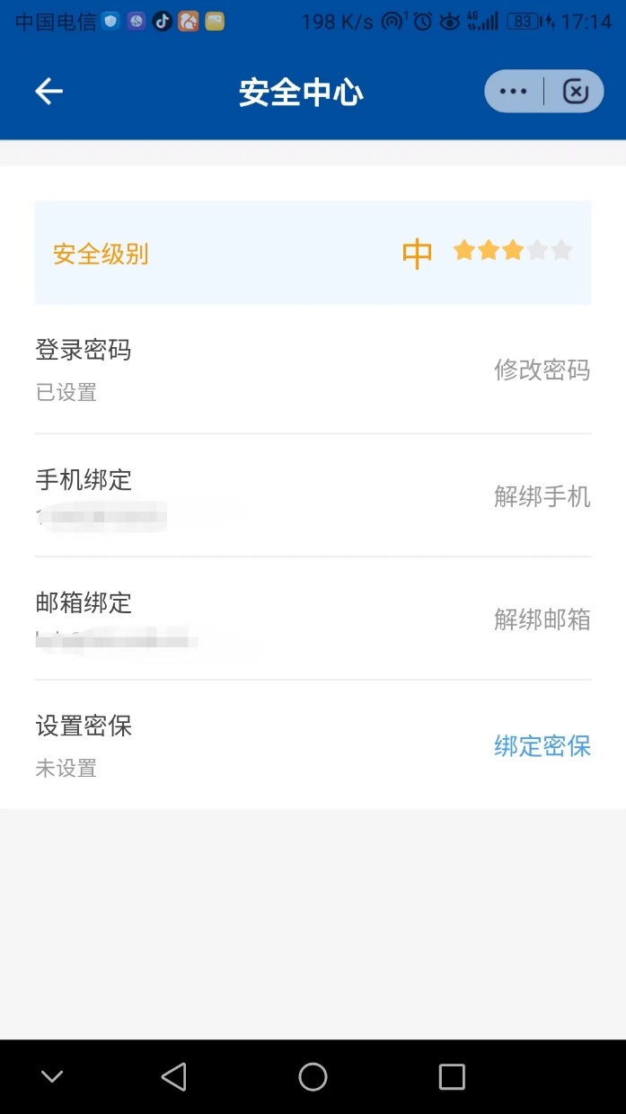 8、 在安全中心可以修改登录密码,绑定手机,绑定邮箱等。建议绑定手机和邮箱,在忘记密码时可以方便找回密码。