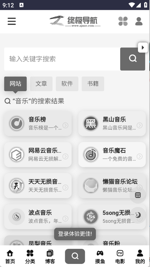 这款综合导航工具支持小说、音乐、影视等多类内容检索,平台所有资源均无需付费获取。简洁无干扰的搜索界面让查找过程更高效顺畅,系统还能基于用户偏好智能推送同类型优质内容,各类所需资源都能在此一站式满足。