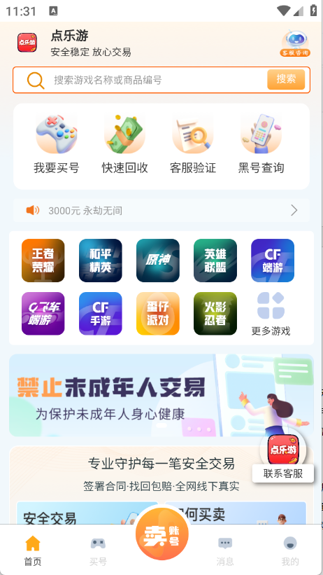 点乐游,专业的游戏账号交易平台,端游都有,每款账号都是经过严格的审核才可以发布的,另外还会根据用户的喜好智能精准推荐相同类型的账号,性价比超高,帮助玩家购买到心仪的账号。