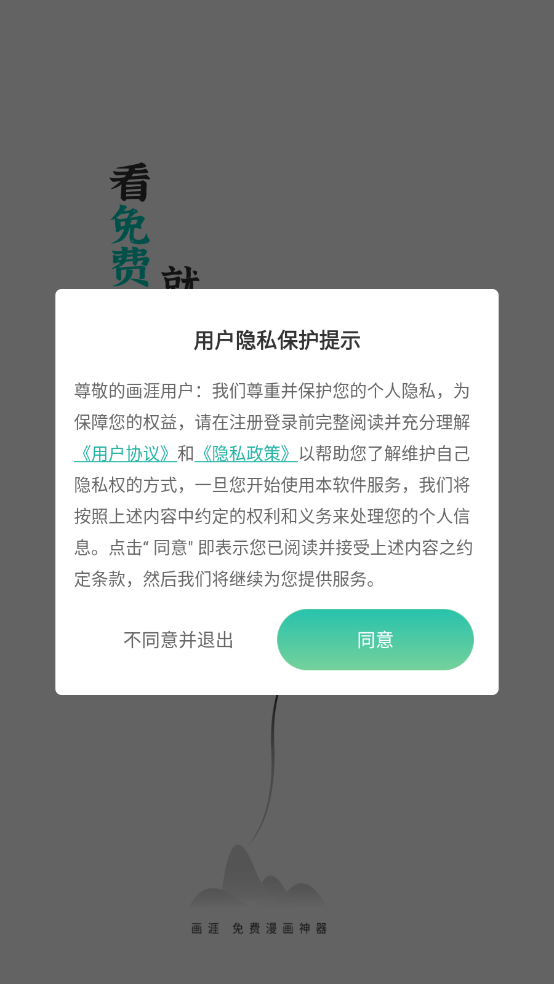 1、首先在3G游戏网安装画涯到手机上,查看并同意相关政策与协议。