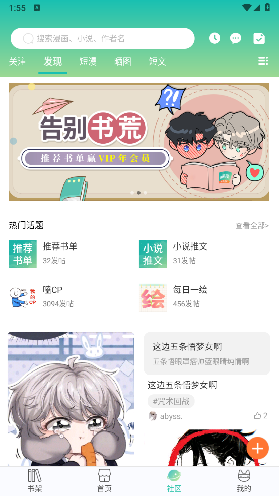 6、在“社区”页面,可以和其他用户分享漫画,也可以发布帖子。