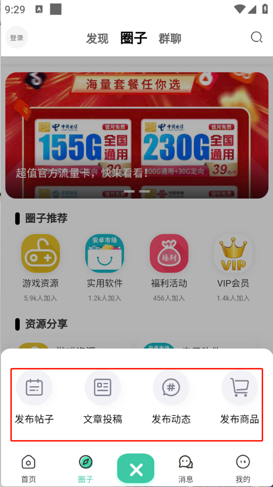 4、“圈子”栏目,可以加入感兴趣的群聊,结交更多的好友。