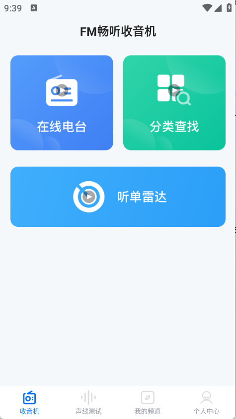 FM畅听收音机,涵盖了很多的广播电台,包含收音机、在线电台以及听歌雷达等,所有的音频都是免费畅听的,可以通过关键词进行精准查找,无论身在何处都可以畅听全国各地的音乐电台,为用户带来纯金的收听体验。
