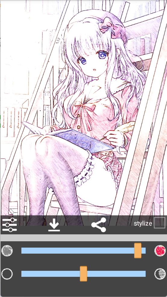 对于喜欢素描风格图片的用户来说,Sketch Camera 是很合适的,可以选择图片也可以在线拍摄生成各种素描图片,可以将生成的图片进行分享、以及保存等,可以调节亮度、饱和度以及边缘强度等。