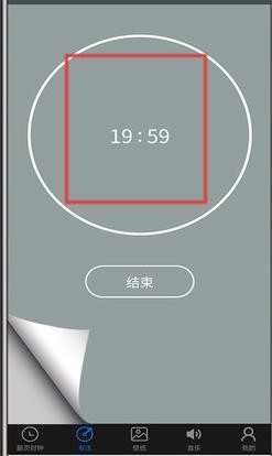 1屏幕上展示着计时相关的界面,能看到此刻的时刻为晚上七点五十九分,界面下方设有一个可结束计时进程的按钮。