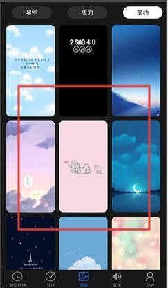 3、这是壁纸选择界面,简约分类下陈列着多张风格各异的壁纸,红框标出了可选区域,方便用户设置手机桌面。