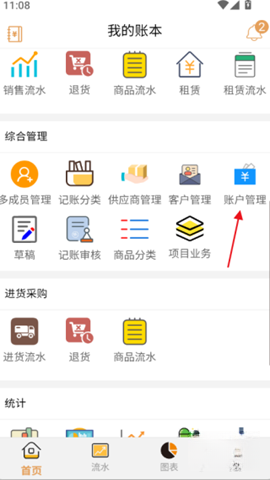 1、启动软件,进入主界面后,点击页面上的“账户管理”选项进入查看。