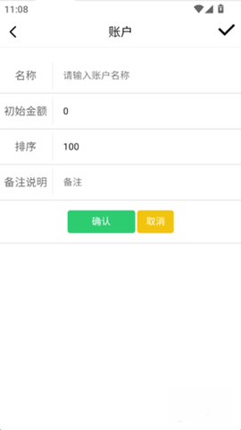 3进入账户相关页面后,填写名称、初始资金数额、排序序号等所需内容,完成后点击确认按钮,就能启用该功能了。