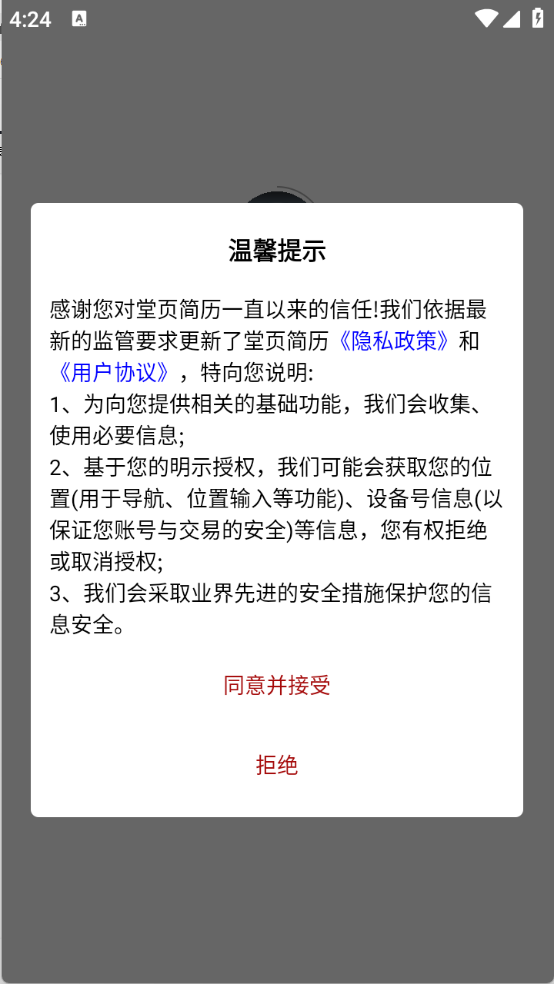1、首先在3G游戏网堂页简历模板,查看并同意隐私政策与用户协议。