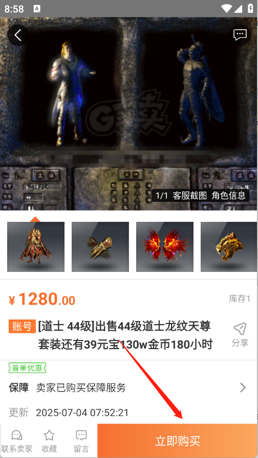 4、点开进入想要购买的账号,点击“立即购买”即可。