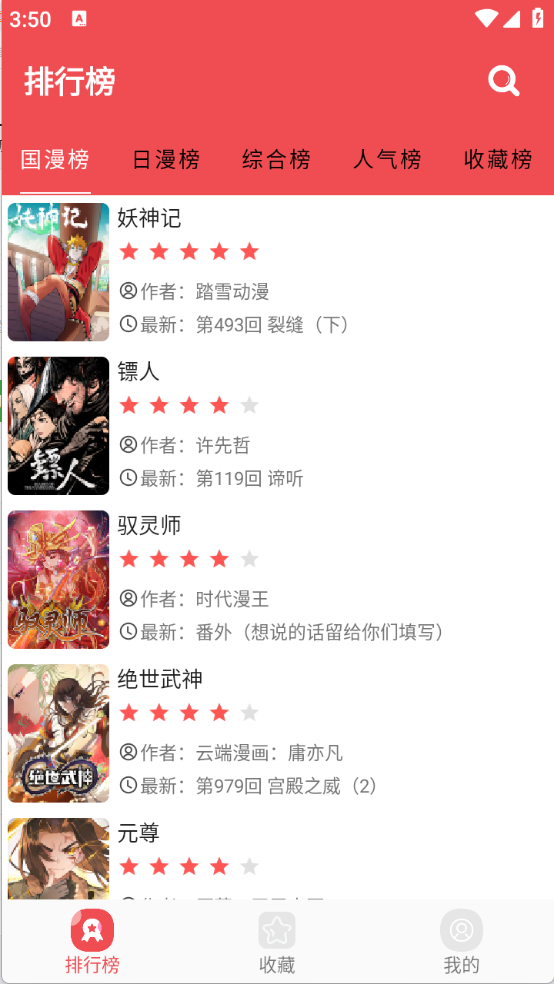 2在漫画的排行展示页面,多种分类标签清晰呈现了不同类型的漫画作品,包括国产漫画的专属榜单、日本漫画的独立榜单,以及基于读者喜爱度生成的热门作品榜单等。