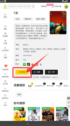 3进入影片详情页面后,点击“立即播放”按钮即可开始观看影片内容。