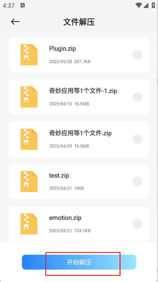 4、选择要解压的文件,点击“开始解压”即可。