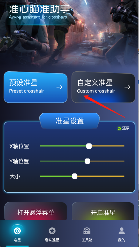 3、准星自定义:可对其大小、颜色、形状及透明度进行调整。