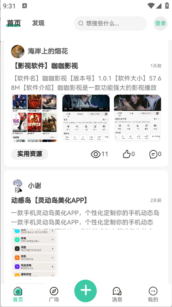 3、“广场”页面,汇集了超级多的资源版本,实用资源、GG板块以及游戏分享等。