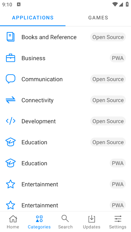 3、类别页面里,对应用与游戏做了细致的分类,能更便捷地找到自己所需的内容。