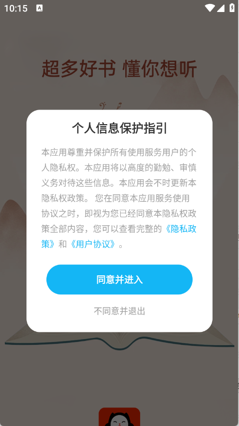 1用户要先在3G游戏网的懒猫免费听书平台上,浏览隐私政策和用户协议的内容,并且表示同意。