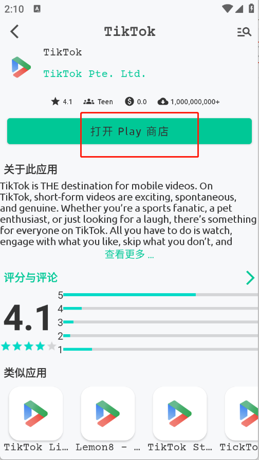 5、用户点开所需的软件资源后,点击打开Play商店。