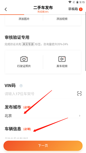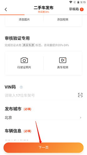 3.点击下一页即可发布车辆