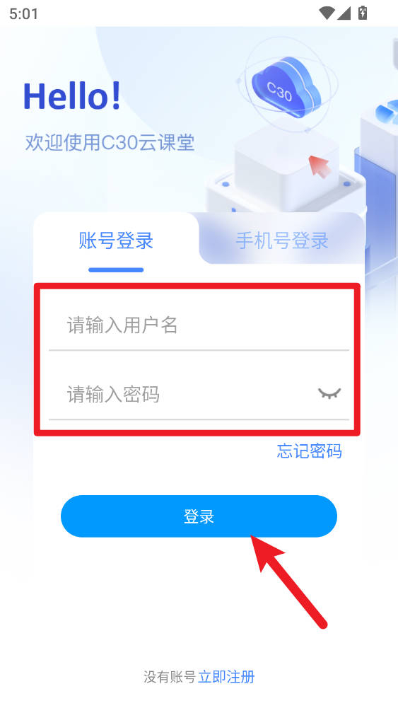 1打开应用后,可选择“账号登录”或者“手机号登录”这两种方式。