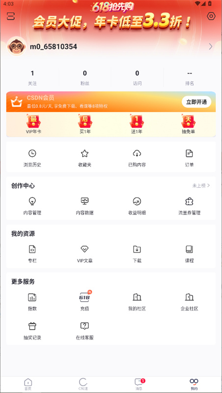 2、这样就完成注册啦,开启你的CSDN代码学习之旅吧。