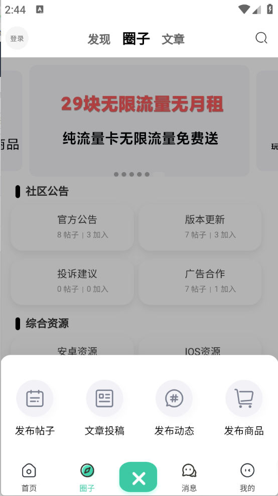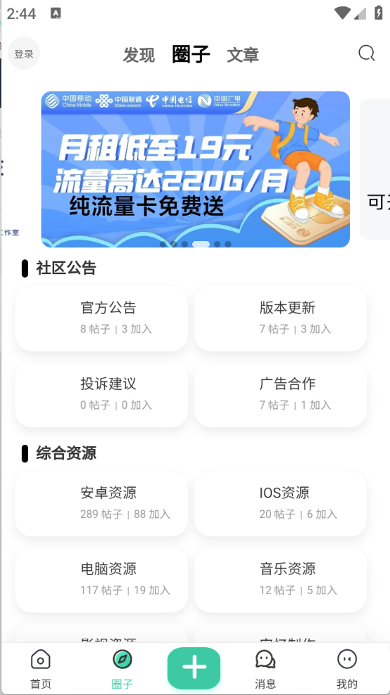 4、“圈子”页面,为用户提供了很多的资源,方便用户快速找到需要的资源。