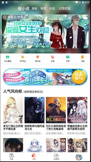 1、首先在本站下载并打开SF轻小说手机版客户端,进入首页就能看到各类热门轻小说。