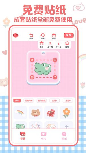 2可以在提供的免费贴纸中挑选心仪的图案,用拖拽的方式把它们放到合适的地方,还能借助图层相关的功能来调整这些贴纸的摆放位置和显示顺序。