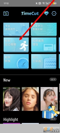 1在TimeCut补帧慢动作编辑器中,找到并启用【智能运动模糊】功能。