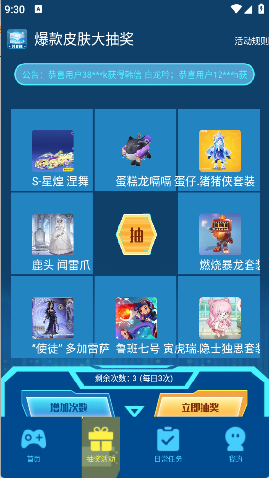 皮肤趣享多多,这里有海量的游戏皮肤资源可以免费获取,只要完成平台任务即可兑换,包括签到、抽奖以及看广告等,皮肤样式超级多,可以及时关注自己喜欢的皮肤样式,所有的皮肤都是限量版哦。