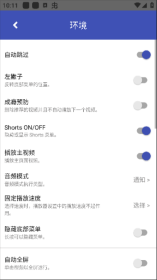 5、对于播放的环境也可以自定义各种设置。
