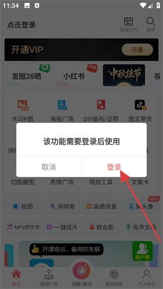 2、点击后会弹出提示,说明该功能需登录才能使用,此时点击登录按钮,即可进入登录页面。