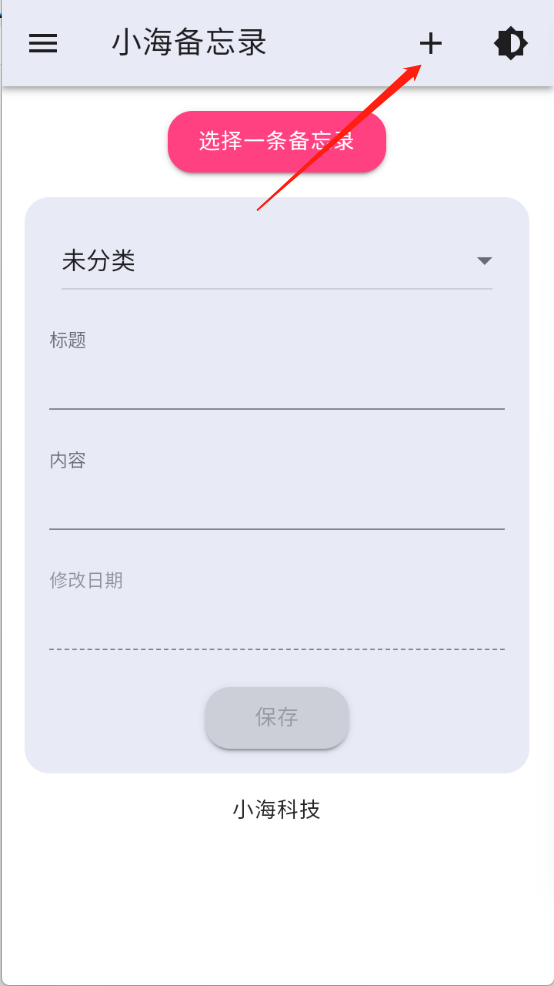 3、选择备忘录类型、标题以及内容、修改日期,点击“保存”。
