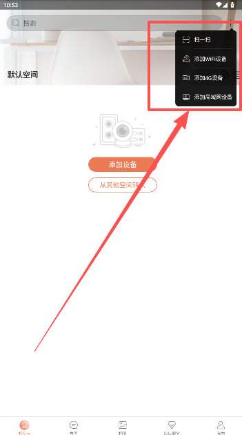 5找到软件界面右上角的加号按钮并点击,接着在弹出的菜单里挑选合适的设备连接类型。