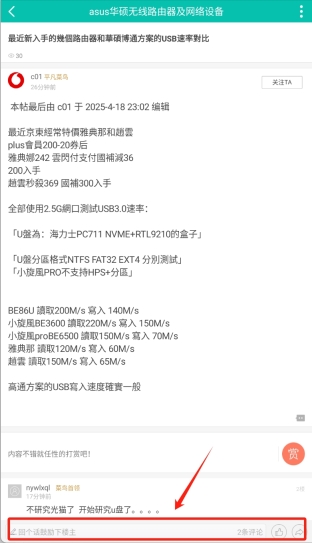 2、点击某一帖子后,可进行评论、点赞、转发、复制链接等操作。