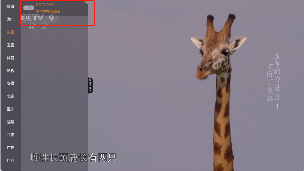 2、进入首页之后,左侧栏目中有很多的电视频道。