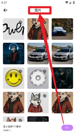 2创建项目后会自动跳转至素材导入页面,此时可从手机相册里挑选需要的素材,选好后点击右下角的“导入”按钮,就能进入编辑界面了。