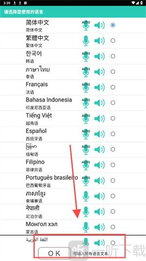 2软件启动后,在语言选择页面分别选定初始语言与转换语言,选好后点击确认即可。