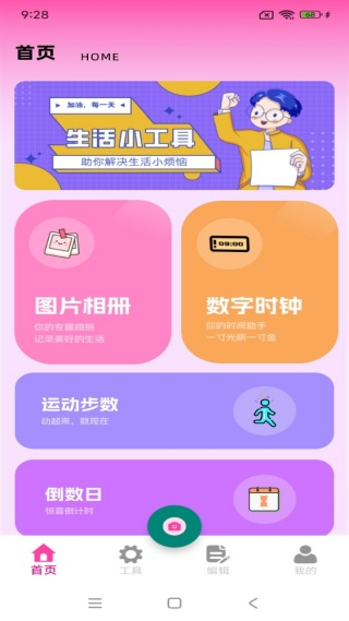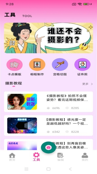 2、首页推送的编辑与美化功能十分丰富,可随时开启快捷修图与内容制作等操作。