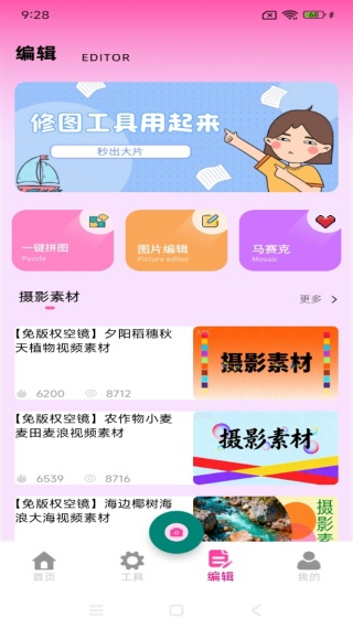 3工具专区会推送丰富的美化特效与素材,是一款极其简约高效的修图工具。
