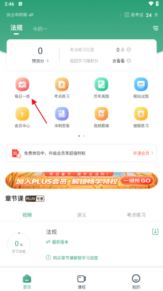 1、在本站操作完成后,打开对应的软件,进入软件首页,点击“每日一练”选项。
